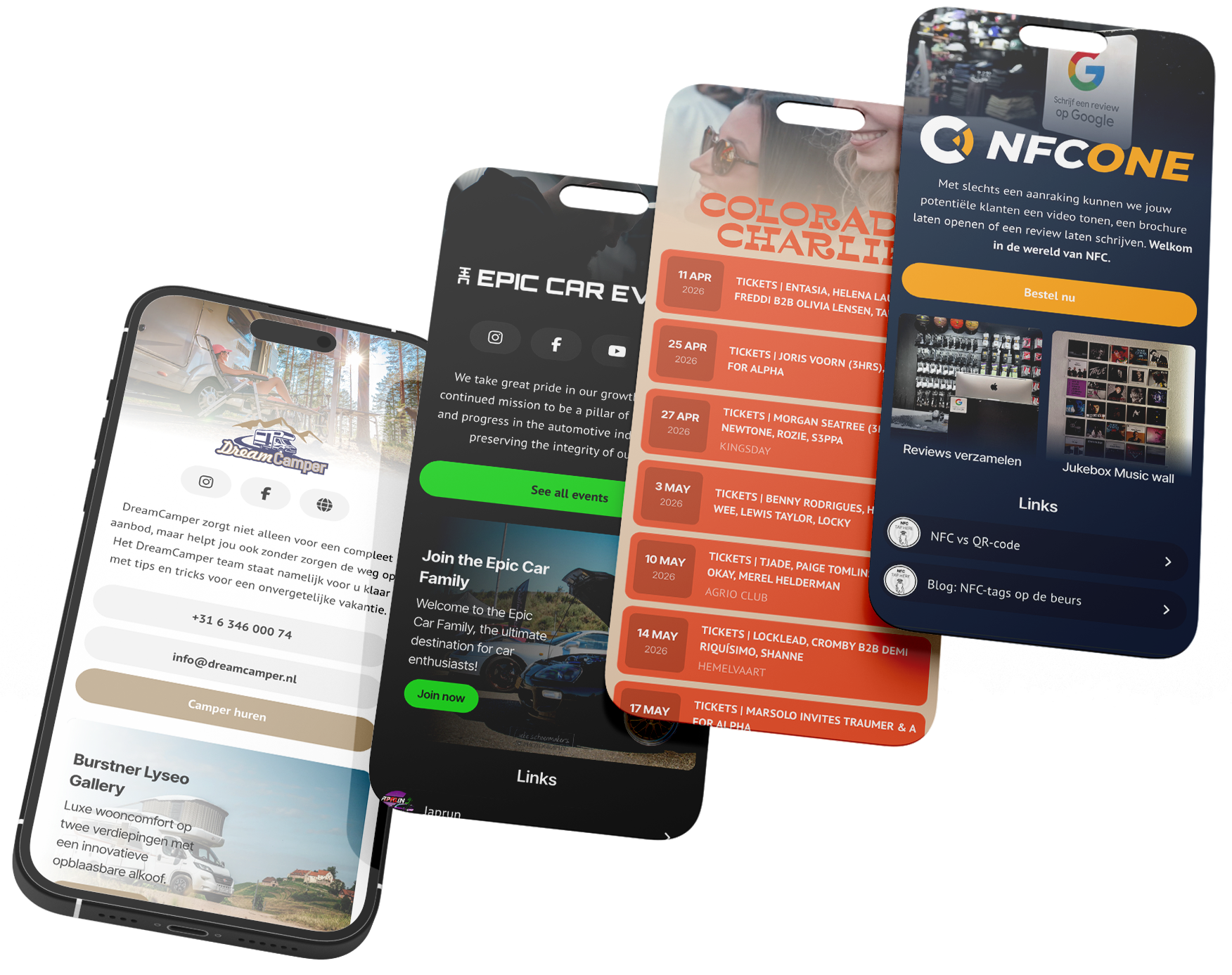 Kies een template die bij je past: voor artiesten, evenementen, webshops of een strakke standaardpagina. Elk template is direct inzetbaar en eenvoudig aan te passen.