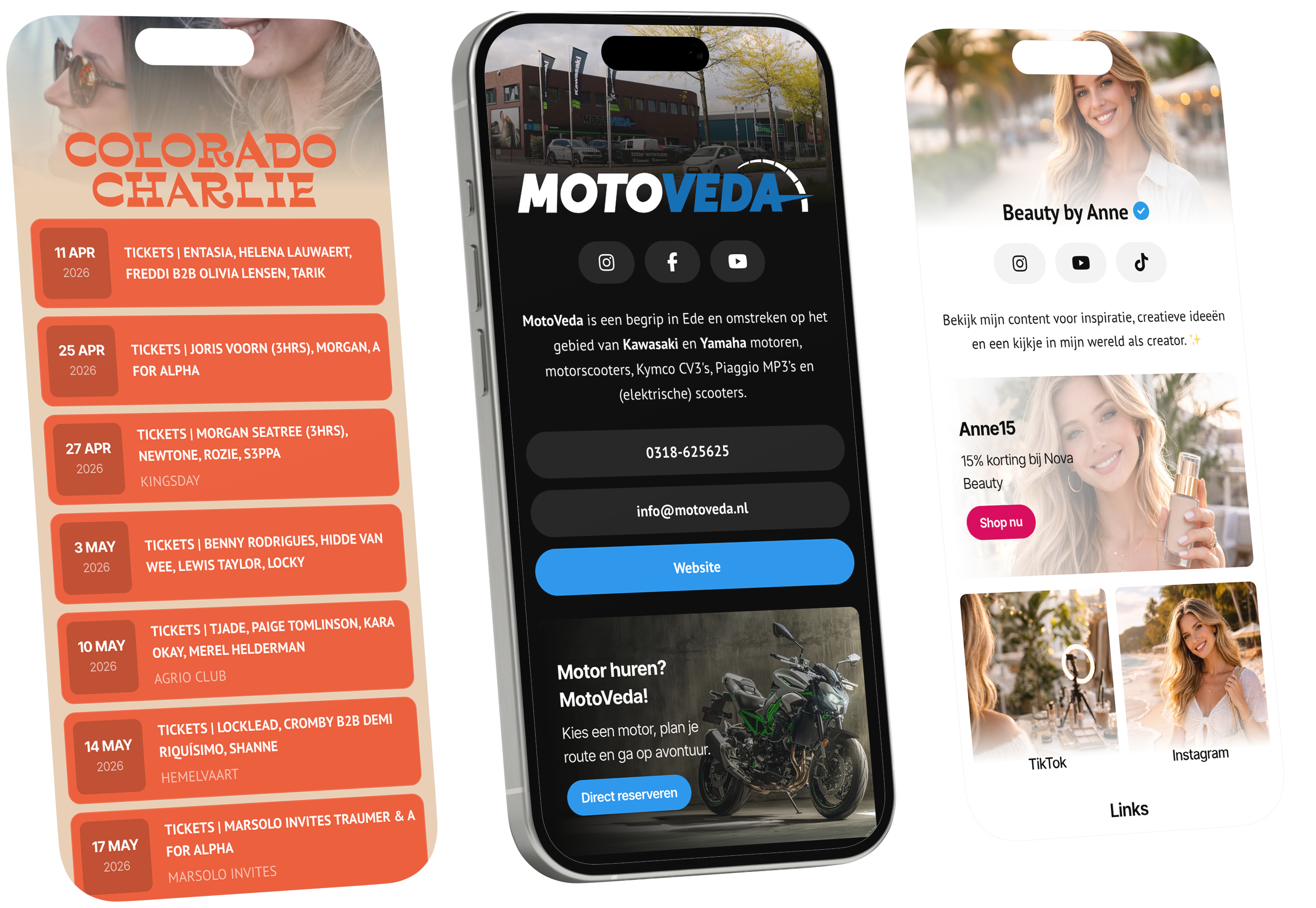 Met Lynqit bundel je al je belangrijke links op één professionele pagina in je eigen stijl. Website, socials, contactgegevens en uitgelichte diensten, locaties of acties. Alles overzichtelijk bij elkaar.